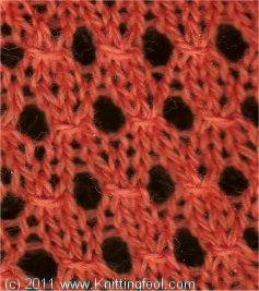 | 7 | R | k2* | yo, K3, with the left-hand needle pass the first of these 3 stitches over the other two | * | k1 |
