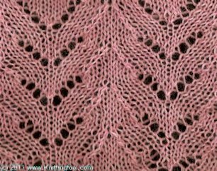 | 5 | R | k1* | k2-tog, k3, yo, k5, yo, k3, ssk, k2 | * | k1 |