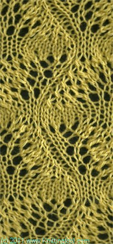 | 22 | R | p1* | (k2-tog) 3 times, (yo, k1) 3 times, k1, p1 | * |